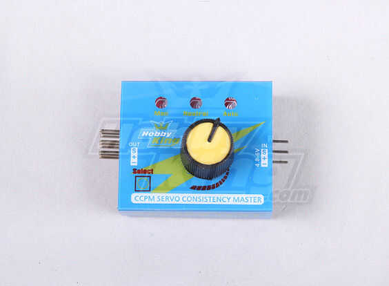 En el mundo de la manía, existe un pequeño dispositivo que se vende comercialmente que hace precisamente la tarea de convertir un movimiento de mando a impulsos "servo", y se llama un probador de servos . Un ejemplo se muestra en la figura 2; éste en particular . Se utilizan en lugar de establecer una radio entera y el receptor sólo para asegurarse de que sus servos trabajan. Note que uno (y más baratas que venden en la actualidad) tienen tres salidas, esto le permite probar los 3 servos en un rotor principal del helicóptero al mismo tiempo. Sólo necesita usar una.