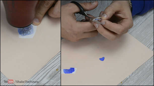 Calienta la pata con un secador de pelo y corte hacia fuera.