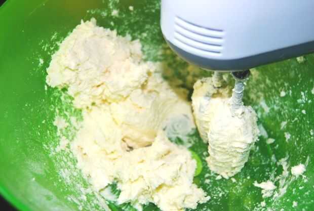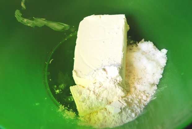 En un recipiente colocar el queso crema, el azúcar y la harina.  Batir a velocidad media hasta que quede suave