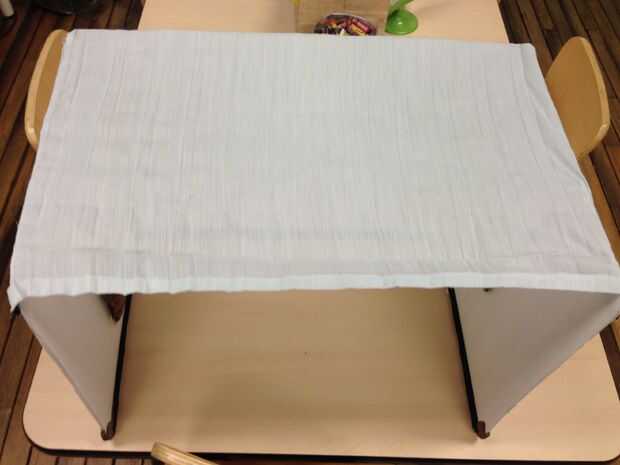 Organizar sus plástico dobleces en ángulo que van a estar cuando el oficial está abierta. Medir a la tela encima de la oficial a la que seguramente usted tiene la cantidad correcta. Hemos utilizado a una tela que era un poco transparente de modo que podría entrar algo de luz, pero nadie podía ver nuestros documentos a través de él. Cortar la tela y pegamento caliente luego la tela, apretando a la tela con el final de un marcador para que no queme los dedos.