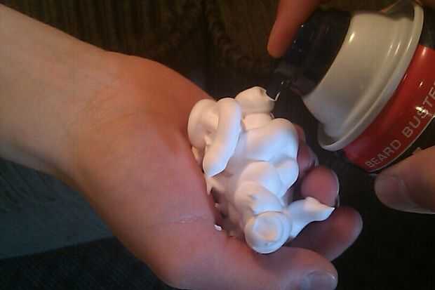 Tomar la crema de afeitar y llenar la mano de la siesta.  Y me refiero a cargarlo realmente allí!  (El más, mejor!)