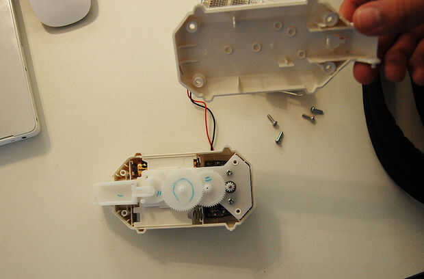 3. Quite el motor y engranaje de la unidad, tomando nota de cómo los engranajes se ponen detrás juntos.