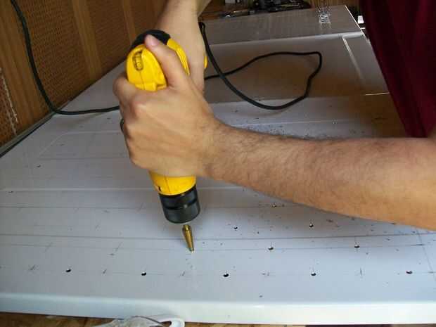 no te olvides de poner un sacrificio pedazo de madera debajo de la tabla durante la perforación.