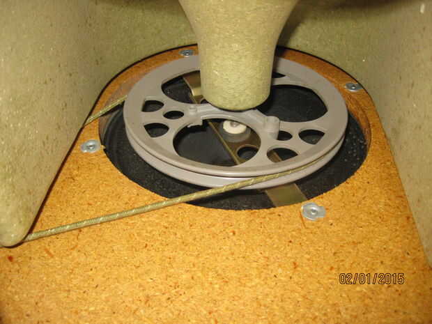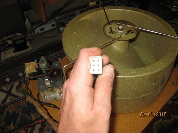 Ahora para la parte posterior del órgano. Lo primero que notarás es el gran bloque verde de espuma. Es el altavoz giratorio Leslie. He quitado eso y siguió el arnés de cableado a un conector del bloque de seis pines. Este es un pedazo impresionante de kit! Utiliza dos motores de 120 v para girar un cono de espuma que dirija la salida del altavoz en un patrón circular espacial. Es un genial efecto antiguo de la época predigital.