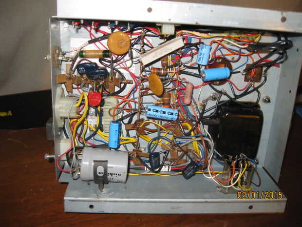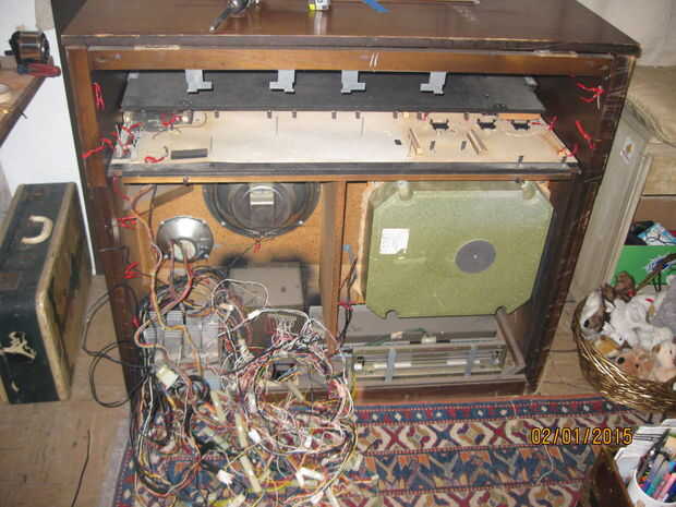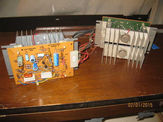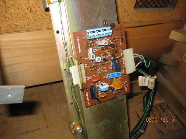 Con el Leslie de tenía más espacio para llegar a las otras golosinas de ese lado del órgano. Primero quité el tanque de la reverb de resorte. Esto da un efecto de eco y reverberación, enviando la señal de audio en un transductor. El transductor es básicamente un pequeño altavoz que causa el sonido viajar a través de unos muelles largos. La señal de sonido literalmente rebota hacia adelante y hacia atrás a lo largo de la primavera provocando ecos que son recogidos por el otro transductor en el otro extremo, esta vez actuando como un micrófono. Esta señal se mezcla entonces con la señal original 'seca' para dar distinto grado de reverberación. Cuando quité el tanque de reverb vi algo que nunca he visto antes - el controlador para el tanque fue montado justo al lado de la unidad! Estética de diseño modular de Hammond ha ganado el día otra vez. La señal para el tanque de reverb viene generalmente de un apartado de un tablero más grande dentro del dispositivo, lo que es mucho más difícil de reutilizar. Para empeorar las cosas, los transductores utilizados requieren impedancias extrañas que significa que simplemente no puede ser conducidos por una señal de nivel de línea. Tener la tarjeta de conductor montado en la unidad significa a que él sólo necesita voltaje, señal de entrada y de salida y unos potes e interruptores para convertirse en una unidad de reverberación funcionamiento.