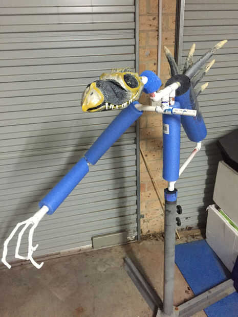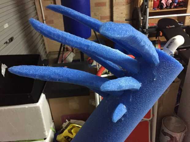 Ahora que tenía una cabeza y una mano que era tiempo de llegar a un cuerpo. Para lo que sería la parte posterior de los Skeksis utiliza un pedazo de pensar de los tallarines de la piscina y cortar y en forma algunas espigas para agregar a la parte posterior. Corté algunos hilos que solía pinchar los clavos para unir a la parte posterior. Entonces les pegan con epoxi.
