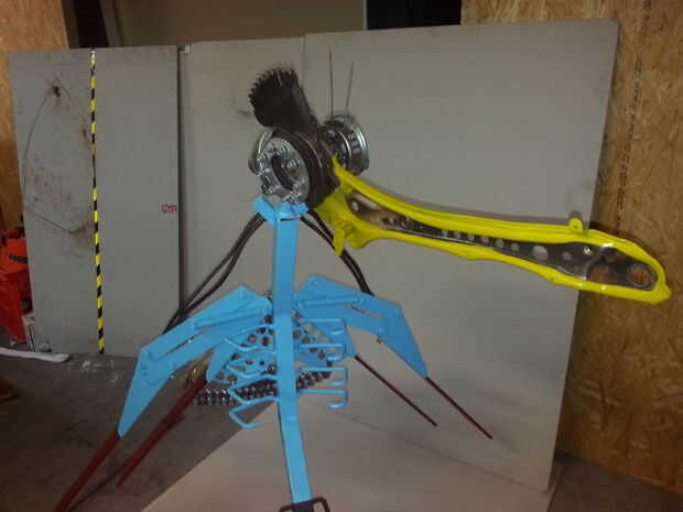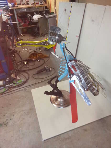 6. los restos de cortador láser, acrílico rojo y acero.