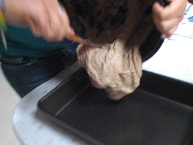 Engrasar una placa para horno y volcar suavemente la masa yeasted