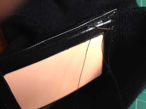 Ahora coser el panel en su lugar pasando por el borde de la cinta de celo en los 3 bordes.