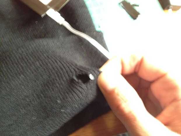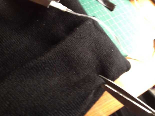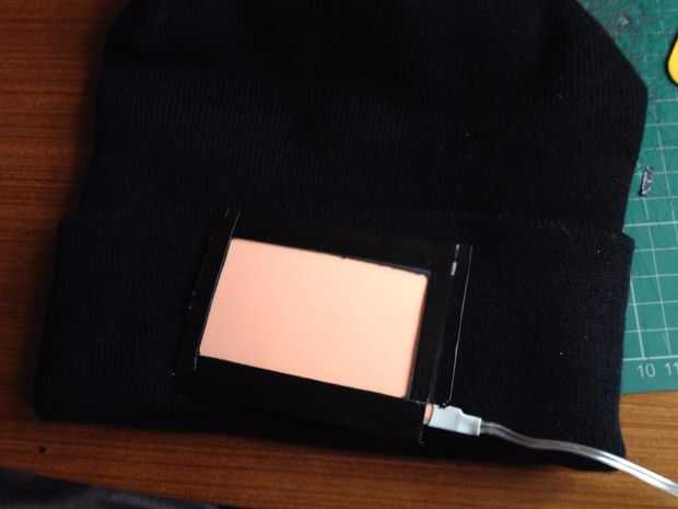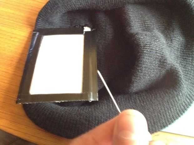 Coloque el panel en la ubicación deseada del sombrero y cortar una pequeña incisión a través de un lado del sombrero para que tengas acceso al interior del boquete y la fuente de energía en la alimentación hasta que el conector esté alineado con el agujero.