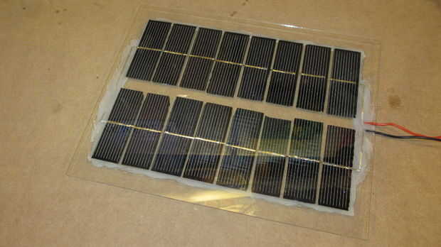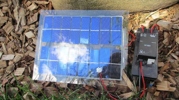 Este panel solar de ocho vatios se construye fuera de vidrio reciclado y láser corte 6' x 6' células solares monocristalinas. Este panel está encapsulado en un epoxy ópticamente transparente recubierto de goma para proporcionar amortiguación contra caída de objetos, así como una barrera impermeable 100% a este panel que tendrá una duración de 20 años sin ningún mantenimiento. Hay una batería de seis voltios y un circuito de carga personalizado. La luz es una combinación de cuatro luces LED de bajo coste 5mm que son desactivados y a prueba de agua.