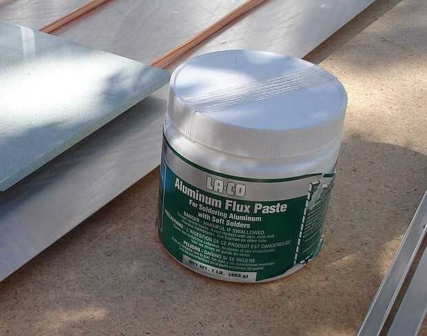 Foto 2: Pensé que era imposible soldar aluminio. Incorrecto! Necesita el flujo adecuado. Me compré este de McMaster-Carr para cerca de $30. Notas: 1) comprar un bote más pequeño, esta fue la manera más de necesario. 2) ser cuidado, esta materia es desagradable: tiene Fl y respirar sus vapores o tocar no se recomienda!
