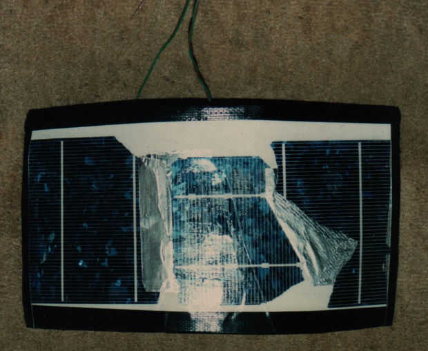 El secreto está en la cinta del conducto. Parte superior de la cinta primero. Baje duro de plástico transparente durante el uso de cinta seguro abajo, derecha e izquierda lados. La presión conecta el aluminio para los lados superior e inferior (positivo y negativo) de chips de PV