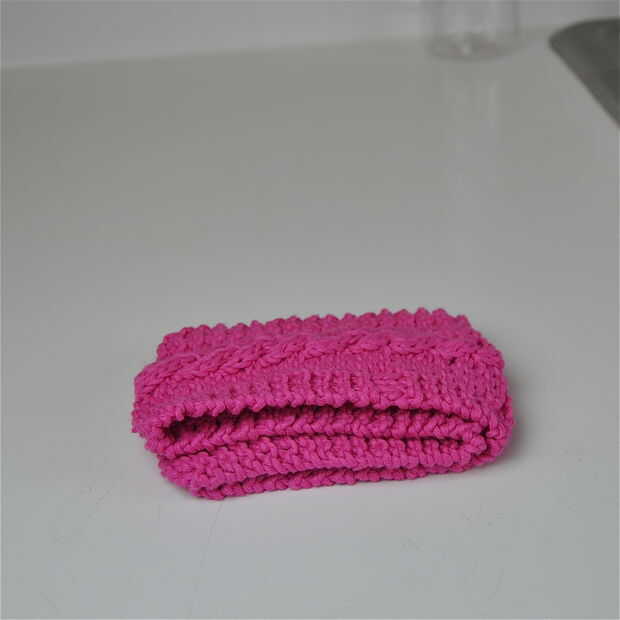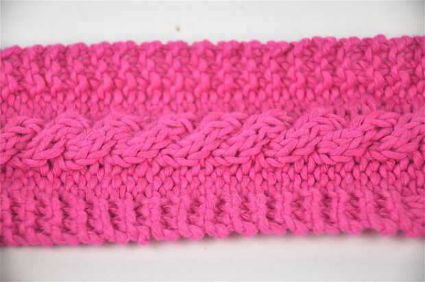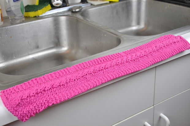 Mi trapo de cocina quería rizar y creo que es debido a los tres purls en k3 k4 de p3 p3 k3. Creo que si aumentar su conteo de punto constante en el exterior y disminuir el conteo de la segunda serie de tres puntadas, no rizos. Así dicen en lugar de otro sería k4 k4 de p2 p2 k4. Pero tendría que probar primero que fuera fino. Yo no sabía rizar hasta que conseguí bastantes filas en y ya había se reinició varias veces tratando de conseguir el cable correcto acabo de ir con él. Cuando lo uso pone plano y eso es lo que importa de todas maneras :)
