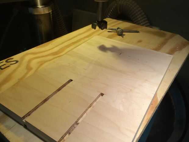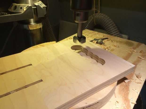 La mayoría del material se elimina (con cuidado) con una broca forstner en el taladro. El material restante se elimina con la ayuda de la OSS. Yo entonces había chaflanado los bordes para mayor comodidad.