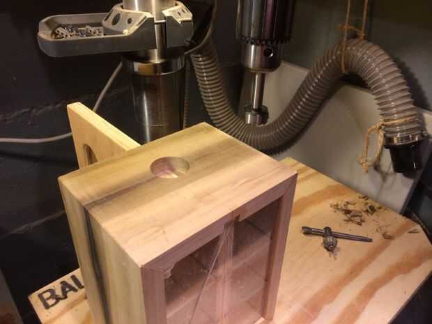 Después de mis ubicaciones, perforé un agujero de 1 1/2, que será para la botella y la tapa. Que luego perforar un agujero más pequeño offset para una lavadora, que será el abridor.