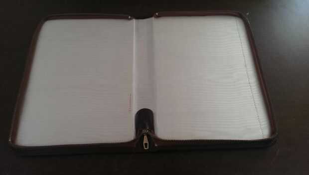 Usé un cuero viejo caso de la escritura. Para prepararlo para su actualización aún las costuras en el interior la aleta y la franja de "sostenedor de la pluma", dejando un interior en blanco.