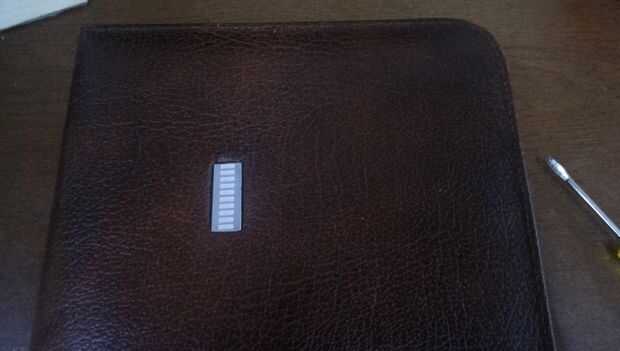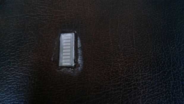 Para ajustar al monitor de voltaje corté un hueco en la cartulina de la caja igual para las células. Marcó la ubicación de la barra de LED y corte la espuma y cortadas un X de esquina a esquina en el cuero.