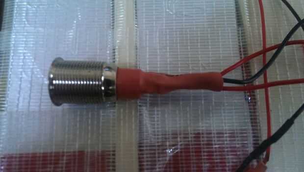Yo podría entonces el interruptor de alambre, - ya que tiene un LED que requiere un cable positivo y negativo. El cableado es muy simple como un lado del interruptor va a la salida del positivo de la carga en el cargador Lipo y el otro va a la entrada positiva del monitor de voltaje y el LED. Entonces puse un pedazo de encogimiento de calor redondo todo para aislarlo.
