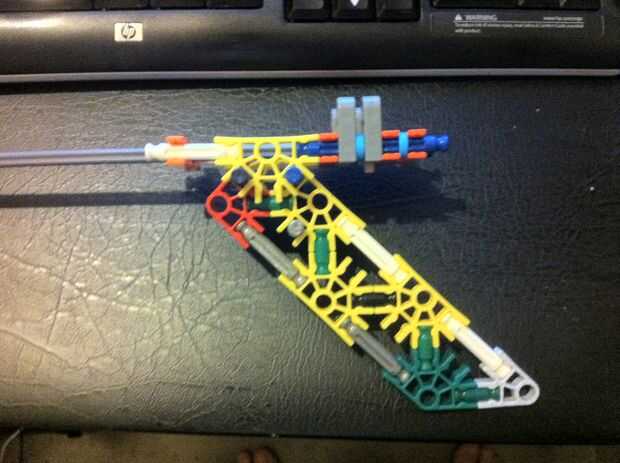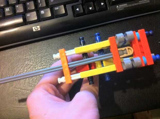 Me vuelve a crear el mango y saqué fotos de él. No hacer ninguna garantía de que es exacto, aunque he intentado mi mejor esfuerzo para asegurarse de que era. La barra gris sirve como el cerrojo de la pistola, que empuja una bala de la mag en la cámara.