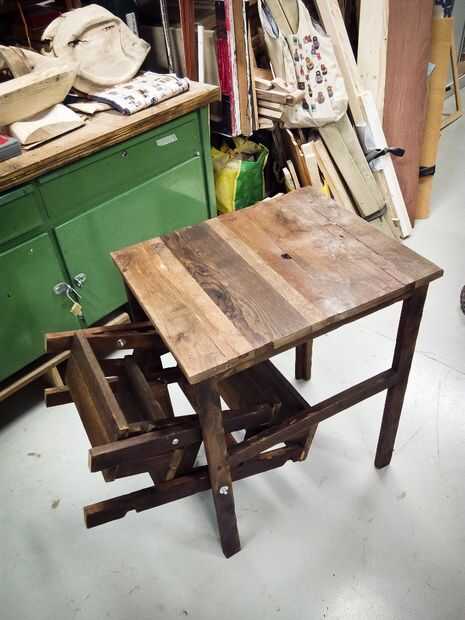Este es un instructivo para una simple mesa plegable del proyecto. Un poco funciona como una bandeja de TV gigante, da estabilidad y espacio para trabajar pero cuando no esté en uso, puede ser doblado para arriba y colocado fuera del camino. Los mate