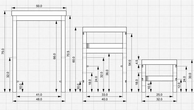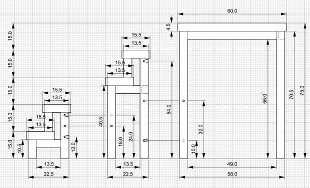 Mis barras de madera son 3.5 x 4.5 cm, y las juntas son gruesas de 4.5. Si tienes barras con diferente altura o dimensión se debe cambiar todo el proyecto, pero no dude en preguntar en el foro de ayuda y tableros de madera.