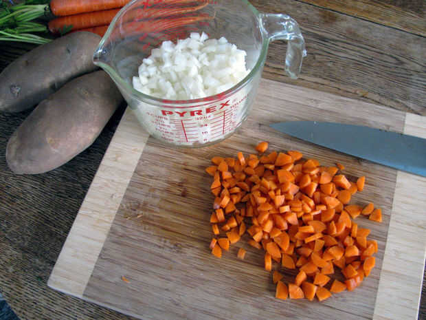 1-2 medio zanahorias (o colinabo para tradicional Cornish pasty), cortada en cubos