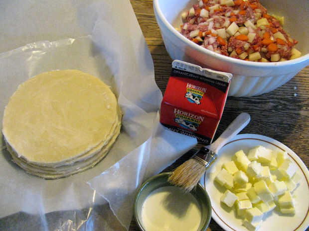 Sobre 4 cucharadas de mantequilla, corta en 24 piezas (3 por pasty)