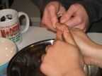 Compruebe cada 5 minutos cerca de este punto para obtener una consistencia para untar. (Si el glaseado se hace demasiado grueso, deje reposar a temperatura ambiente, revolviendo ocasionalmente, hasta que ablanda a una consistencia propagable.)