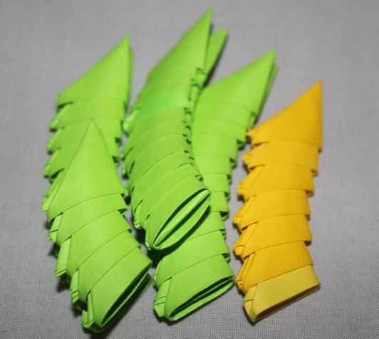 Paso 11: Poner It Together - la cola (triángulos verdes 35 + 7 triángulos amarillos)