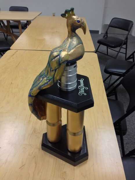 Y ella... El pavo real... he aquí un worthing trofeo lucha por!