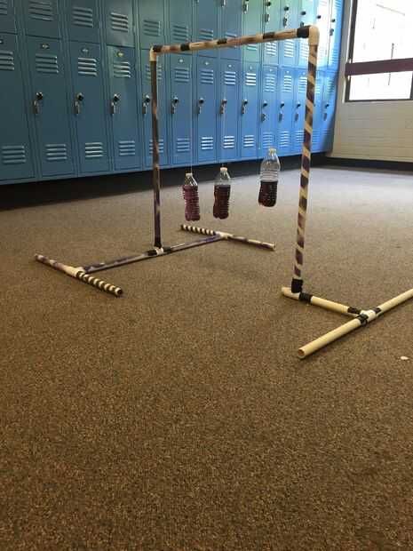 Queríamos construir una pieza de arte cinético que había representada un tema más grande como el tiempo. Las tres botellas de agua representan diferentes etapas de la vida, pero si parecía lo suficientemente cerca, vemos que el agua es el nivel en todas las botellas de tres, que representa el hecho de que tiempo se mueve al mismo ritmo durante todo el curso de la vida. La longitud de las cuerdas también son diferentes longitudes por una razón. la longitud de la cadena también representa la longitud de la vida de uno como de los matices de la botella también representan la vida. la más ligera sombra el más viejo se es. También cuanto más tiempo la cadena, el más viejo se es. El tema de la estructura iba a ser morado y gris porque creíamos que los colores evocan un sentido de tiempo mucho mejor que otros.