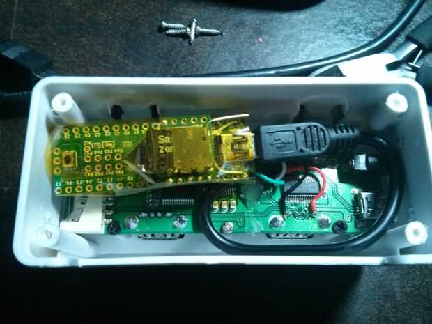4. Conecte el cable USB Mini-B el Teensy aislado y cuidadosamente cosas en el caso. (si tienes el orificio reset línea)