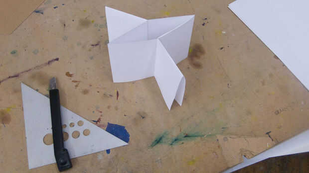 Paso 5: Doble a lo largo del pliegue de la larga y abrir el corte para hacer una X