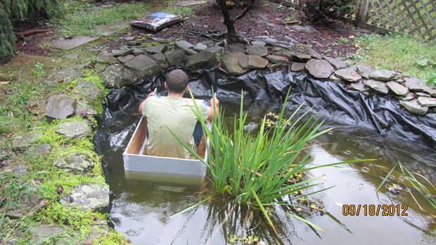 Básicamente, hice el barco sólo lo suficientemente grande como para caberme una vez que siente en su interior. Desplaza agua suficiente para hacerlo, sin embargo, me siento bastante bajo en el agua, así que cualquier movimiento repentino (o incluso cualquier tipo de movimiento) probablemente hará agua splash dentro. Calafatear y me atornilla cada una de las piezas de madera entre sí, por lo que es bastante estable. La pintura acrílica se encendió bien y después de dos manos no creo que toda el agua va empapando la madera contrachapada. (Tan pronto como lo tendría)