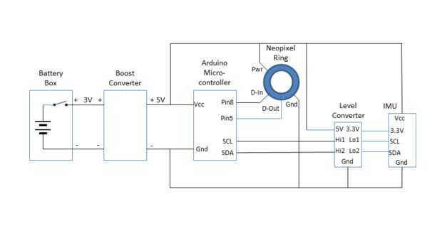 Conecte el anillo de NeoPixel. Puede utilizar la conexión de cable de núcleo sólido pero trenzado es probablemente mejor. Me gusta usar solo 4 hilos de cable de cinta del arco iris. La longitud dependerá de cómo va a instalar la Junta y el anillo.