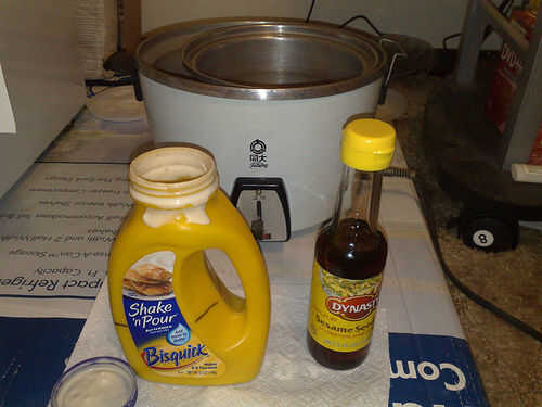 Necesitarás una olla de arroz, una taza de metal, 1 palillo, una toalla, algunos crepes, aceite y 2 tazas de agua (para hervir/calentar el recipiente).