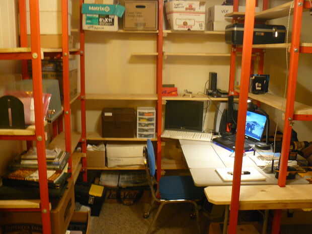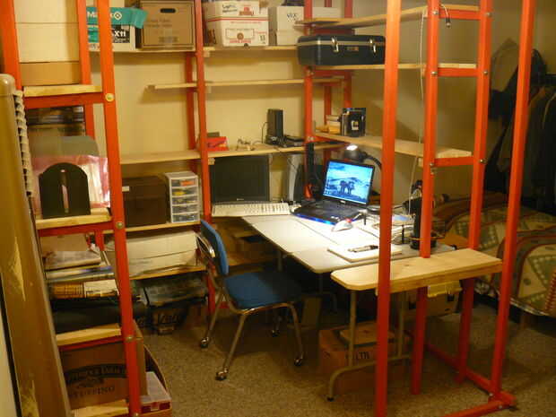 Precio en primer lugar algunos grandes resistente estantería unidades en la tienda local de caja grande y funcionó en varios cientos de dólares. Decidí que podía hacer mejor que eso y tiene una cabina agradable personalizada a mis necesidades. Reconozco que esta idea fue provocada hace muchos años cuando vi por vez primera algunos cubículos personalizados en un libro, muebles nómadas, pero mío va un poco más allá de los diseños.