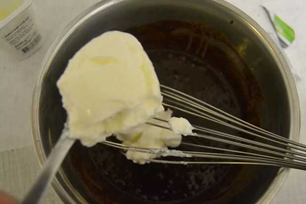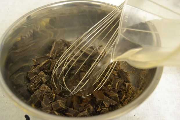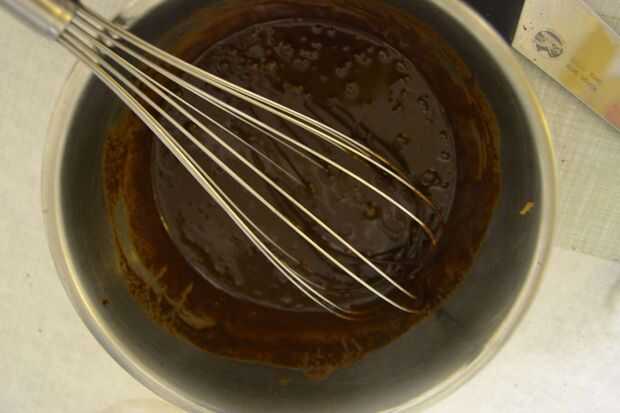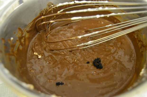 El perfecto pastel de chocolate cubierto con nueces caramelizadas saladas (2 / 5 paso)