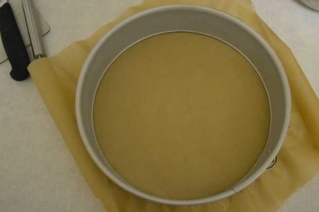 picar finamente el chocolate y poner en un cuenco. Vierta el agua hirviendo sobre el chocolate (no te preocupes, no se cuaje, sólo asegúrese de que el agua esté muy caliente). batir la mezcla hasta que se disuelva el chocolate y luego añadir el yogur. hacer una hendidura en la vaina de vainilla y raspar las semillas y añadir a la mezcla de chocolate así. mezclar bien y dejar a un lado. preparar el springform: poner un trozo de papel para hornear entre la parte inferior del springform y el anillo, el anillo de la mantequilla.