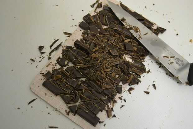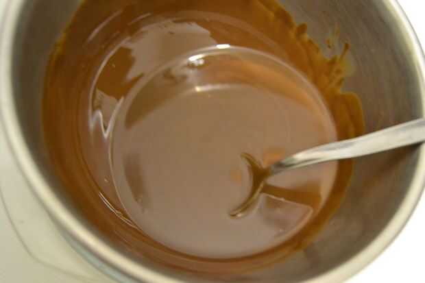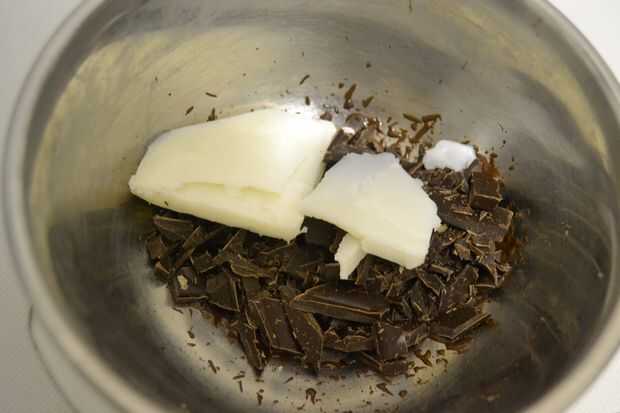 picar el chocolate, poner en un recipiente junto con la grasa de coco y derretir a baño María. dejar enfriar un poco.