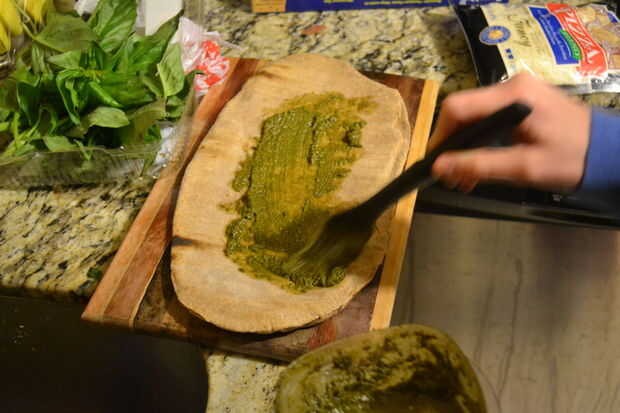 El perfecto Pesto a la parrilla y la Veggie Pizza fecha noche (4 / 6 paso)