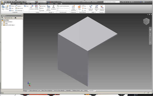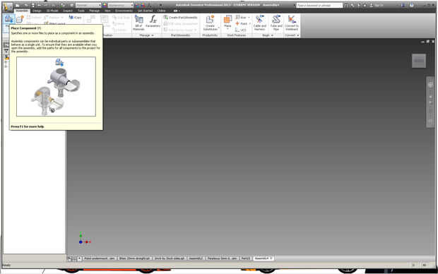Abrir un nuevo archivo de ensamblado (.iam) y la 2 caja echada a un lado en él. El botón de componente de lugar está en la esquina superior izquierda. Asegúrese de no seleccionar la flecha pequeña al lado de él de otra manera no puede encontrar su 2 echó a un lado caja.