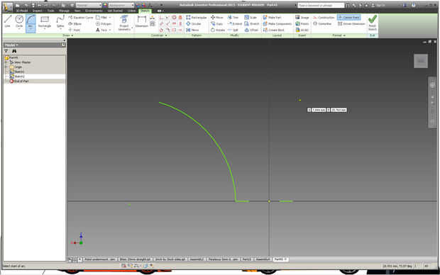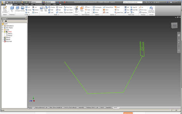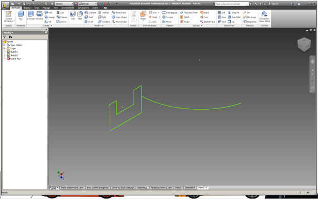 Una vez el bosquejo básico es crear otro boceto 2D excepto esta selección de tiempo el avión fueron buscas hacia abajo el esbozo 2D básico. Luego dibujar una línea con curvas que comienza en una esquina del boceto 2D básico y extremos estaban que quieres la pieza de extremo.
