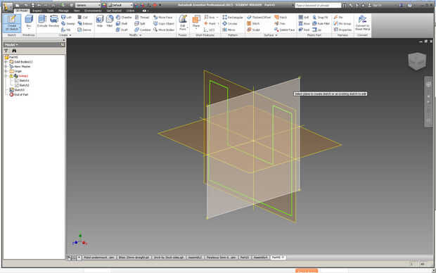 Para crear un inicio de pieza curvada con un dibujo 2D y seleccione el plano de. Utilizar el mismo plano como si sería crear un componente básico y luego de extrudado.