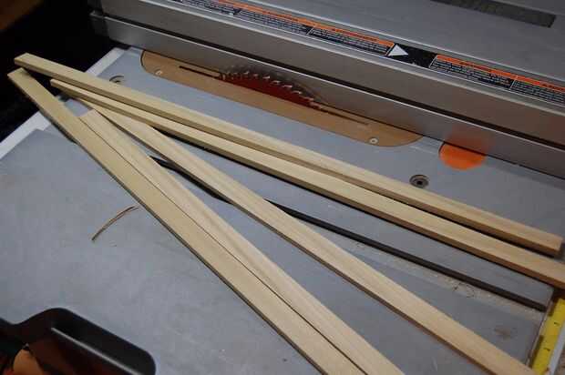 Comencé por ripear algunos chatarra de álamo de 3/4" en tiras de 1/4", que se utilizará como bandas de borde.
