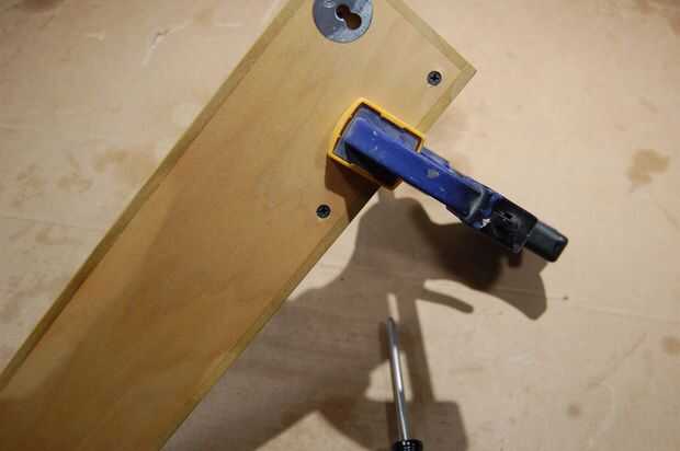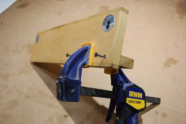 Comencé a mano los tornillos por lo que los puntos sólo se sacó la parte delantera, que me permiten conseguir el estante alineado antes de volver a aplicar la mordaza. La abrazadera la mantuvimos el estante en su lugar y firmemente a la parte posterior como manejé los tornillos a mano.