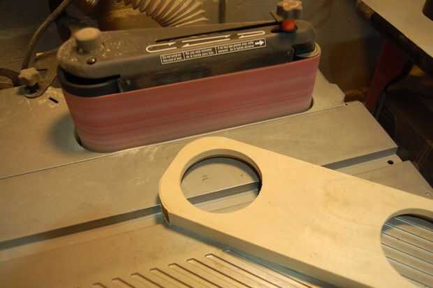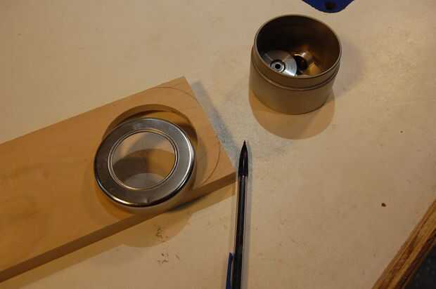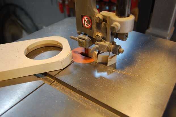Para eliminar las esquinas afiladas, I mi rodamiento de la tapa del contenedor se utiliza para dibujar un arco, recortar la mayor parte de los residuos utilizando la Sierra de cinta y lijar luego a la línea usando la lijadora oscilante del huso.