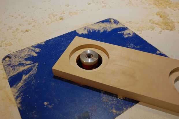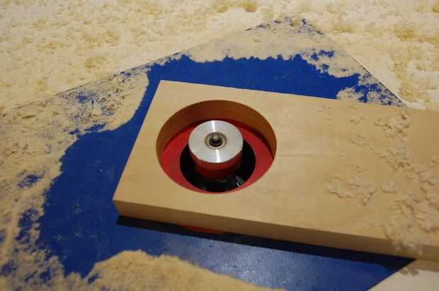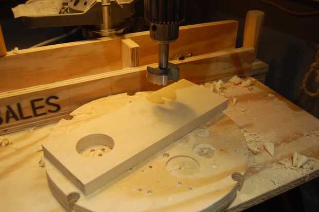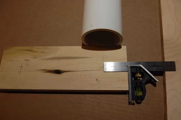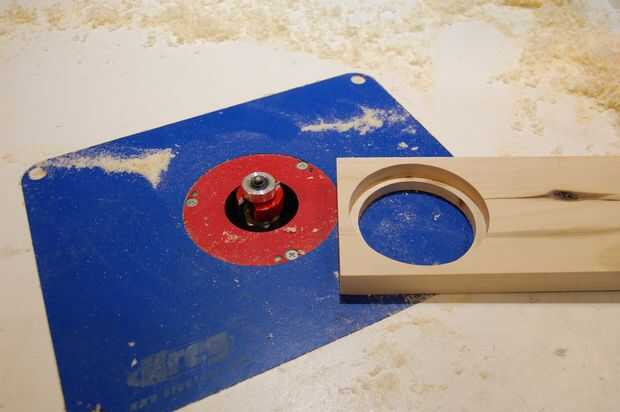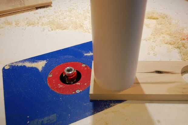 En otro trozo de álamo, que pasó a ser 4" de ancho, hice una marca de 2" en de cada lado y extremo. Se trata de la marca para el tubo de PVC de 3". No tengo un Forstner bit este grande (todavía), usé la broca más grande que tenía y luego agrandar el diámetro con un tope conjunto de bits. Cambiando hacia fuera del rodamiento superior, puede alcanzar profundidades diferentes. En mi caso, usé un rebajo de 1/2" profundidad para ampliar la mitad de la profundidad, conectado a la descarga del cojinete para agrandar la otra mitad y rematado con un rebajo de 1/4" profundidad para crear el hombro para el tubo.
