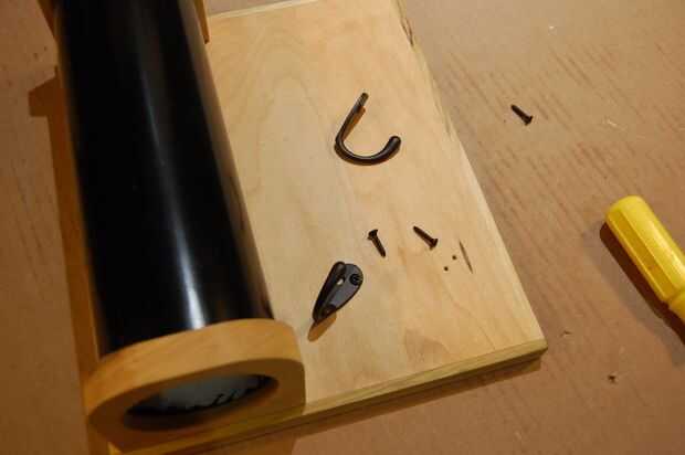 Fije la parte inferior, inserte el tubo de PVC, ajuste y sujete la parte superior, coloque los dos ganchos, aplicar su marca con un stencil y pintura, luego llenar el tubo con bolsas de plástico.